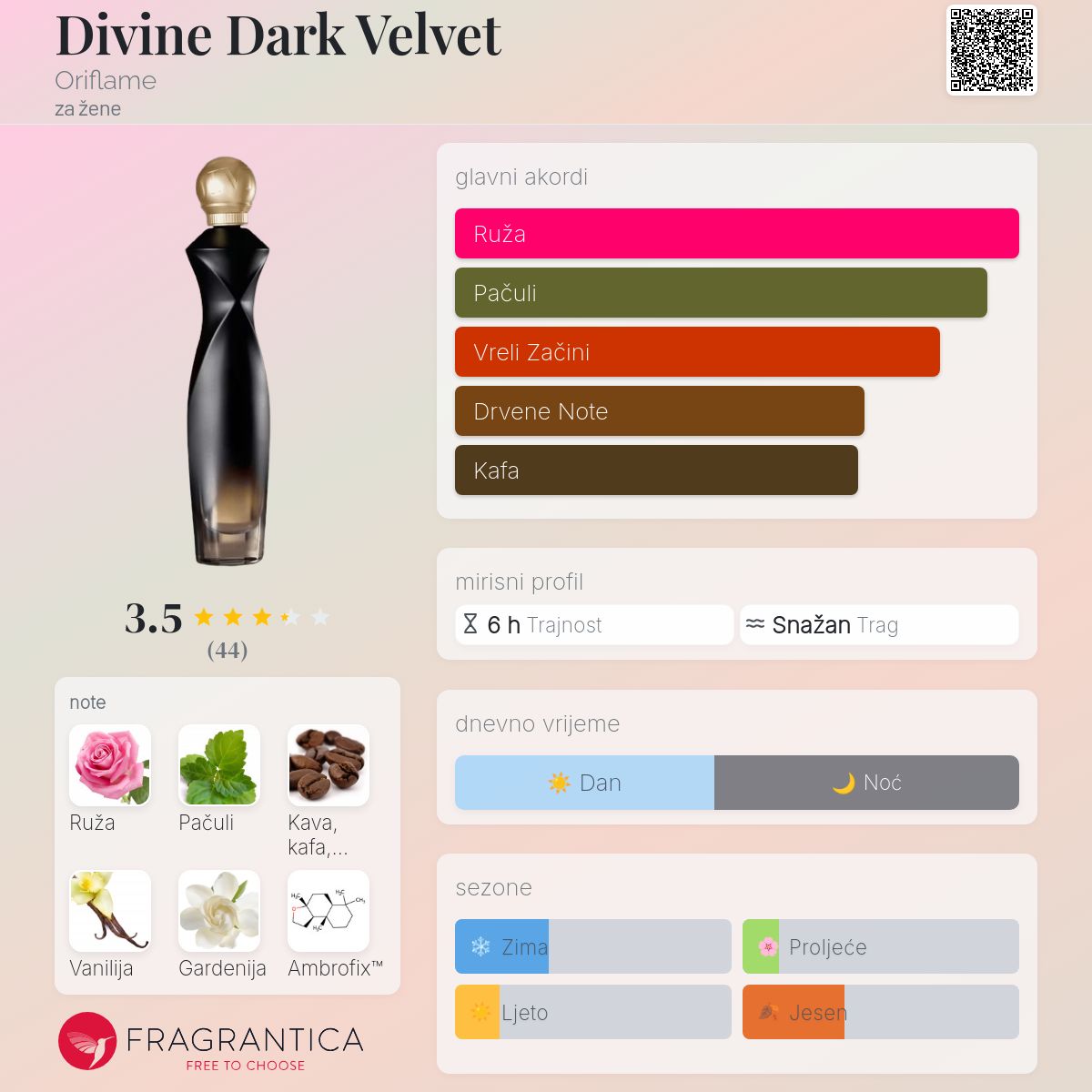 O: Zbog svojih toplih, bogatih i dubokih nota, Divine Dark Velvet je najprikladniji za jesensko i zimsko razdoblje.