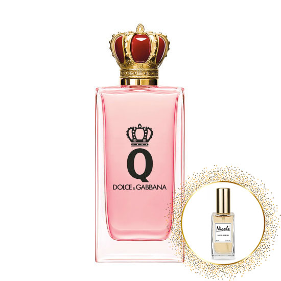Q by Dolce & Gabbana je parfem koji se klasificira kao Floral Fruity Gourmand. Ovaj parfem je lansiran 2025. godine i dostupan je u tri veličine flašona: 30ml, 50ml i 100ml. Parfem je stvoren od strane Daphné Bugey, parfermerke koja je poznata po svojim inovativnim i elegancijskim kreacijama.